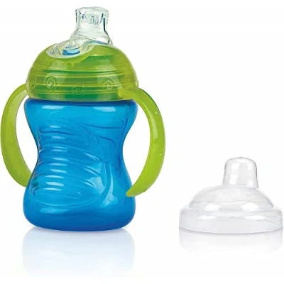 Leak-proof soft silicone mouthpiece and hygienic lid, from 6 months, 240 ml The handles make it easy to transition the bottle to the cup Integrated valve, easy to wash and assemble The shafts on the nozzle protect the bite valve from impact. Thanks to its ergonomic shape, the child learns to drink naturally and supports healthy oral development Vari-Flo system to control the amount of child while drinking