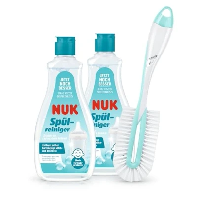 NUK Baby Bottle Cleanser & Brush 2 x Cleaner, 1 Twist Teat 500 ml Ideal for Cleaning Bottles, Teats Accessories Fragrance Free Cleaner pH Neutral