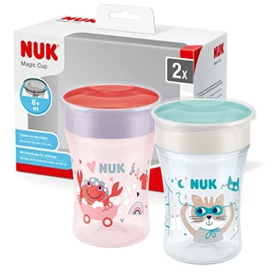 NUK Magic Cup Learning 8+ Months 230 ml Leak proof 360 Drinking Rim BPA Free Red Pack of 2