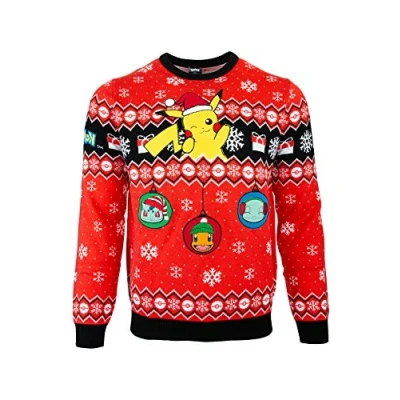 POKEMON DESIGN: Do you want to be the very best? Like no one ever was? Fulfil your potential as a true Pokémon master for Christmas with this high-quality knitted jumper. Emblazoned with a patch embroidery of Pikachu rocking a Santa hat and the three original starter Pokémon, this winter sweater is one for all Pokémon fans looking to embody the Christmas spirit! FESTIVE HOLIDAY SWEATER: If you are looking for the perfect sweater to attend your next “Ugly Christmas Jumper” party, then look no further. The excessive patterns on this knitted jumper are sure to score you some points at your next fun ugly Christmas jumper party, and sure to bring some smiles and laughs as well VARIOUS SIZE OPTIONS: This Pokemon Christmas Jumper comes in a multitude of unisex sizes ranging from: XS, S, M L, XL, 2XL, 3XL and 4XL. With so many different size options to choose from, you are sure to find the perfectly fitting superhero sweater for your next Ugly Christmas Jumper party, regardless of your gender PREMIUM QUALITY DESIGN: All of our sweaters are made from premium quality materials, and 100% knitted. Each of our sweaters are also completely unisex, ensuring a universally flattering fit for both men and women. With its high-quality construction, this sweater is sure to last you through years of ugly Christmas jumper day EXCLUSIVE TO GEEK STORE: Enjoy this limited edition winter garment, exclusively available on Geek Store only! Become a true Pokémon master this Christmas by grabbing yourself this premium quality festive jumper. This knitted jumper features a patch embroidery of Pikachu rocking a Santa hat and the three original starter Pokémon in a classic Nordic design.