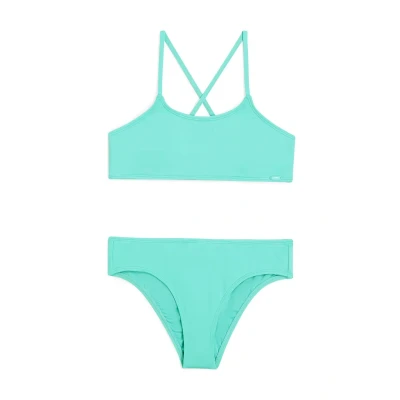 The O'NEILL Essentials Girls' Bodice Bikini has the following features: The O'NEILL Essentials Girls' Bodice Bikini has a bodice top and wide pants for total coverage. Specifications: Fit: regular cut (removable cups from size 140) Closure: no closure Colour: light blue Material: 85% polyamide, 15% elastane