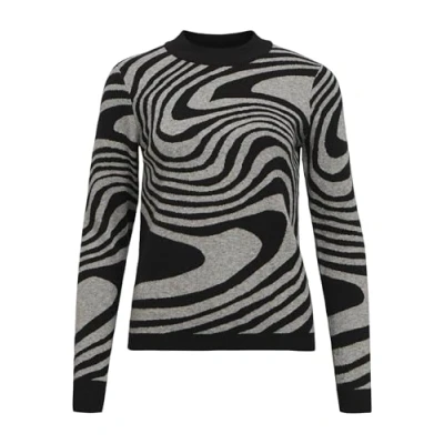 OBJECT COLLECTORS ITEM Women's Objray L/S Knit Pullover AOP Noos Jumper, Black/Pattern: Medium Grey Melange Zebra, L