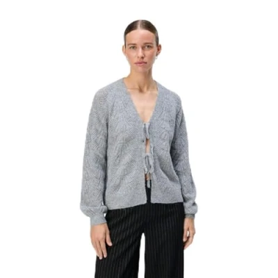 Object Women's Objflora Re L/S Knit Cardigan Noos Sweater, Medium Grey Melange, S