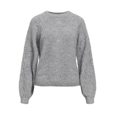 Object Women's Objflora Re L/S Knit Pullover Noos Jumper, Medium Grey Melange, XS