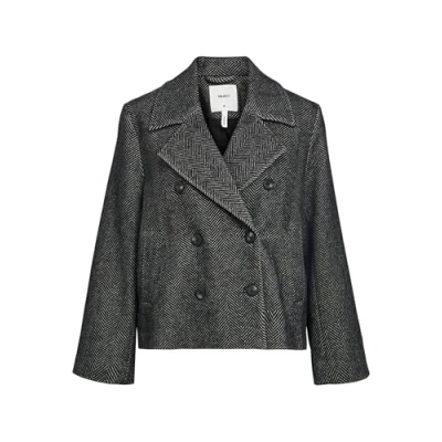 Object Women's Objkeily Short Jacket Noos, Medium Grey Melange/Pattern: Black Herringbone, 8