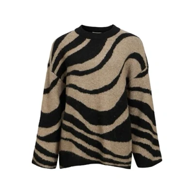 Object Women's Objdiana Lo L/S Knit Pullover Noos Jumper, Black/Pattern: Zebra Desert Taupe, S M