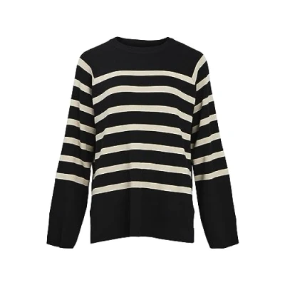 Object Women's Objester Ls Knit Top Noos Sweater, Black/Stripes: Sandshell, XS