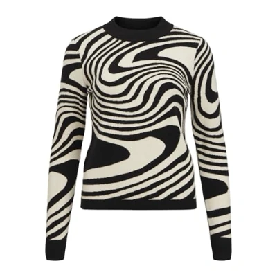 Object Women's Objray L/S Knit Pullover AOP Noos Jumper, Black/Pattern: Sandshell Zebra, XL