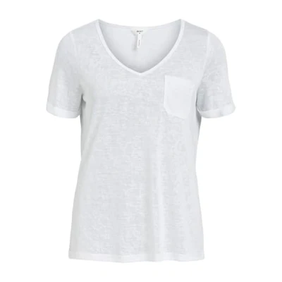 Object Women's Objtessi Slub S/S V Neck Noos T Shirt, White (White White), XS