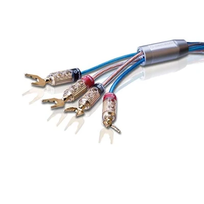 First-class coordinated and excellently processed bi-wire speaker cable - ready assembled with high-quality Oehlbach Fusion banana connectors. 2 x 2.5mm² silver plated oxygen-free copper (SPC) for mid/treble and 2 x 4mm² oxygen-free copper (OFC) for lossless transmission of bass. It reproduces an impressively natural and detailed sound. The use of very high quality materials for both the conductor and the insulation ensure high flexibility and guarantee excellent, powerful bass at the same time fine-drawing treble.