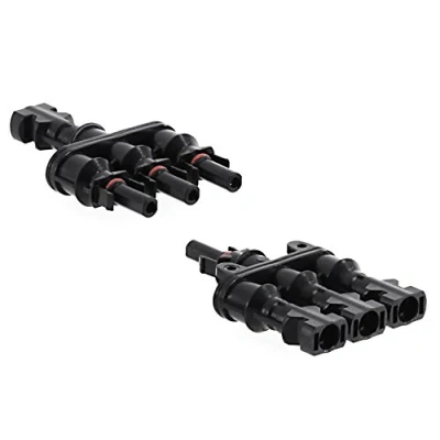 1 pair of T-connectors for parallel connection of 3 solar modules - one socket to three plugs (F / M / M / M) and one plug to three sockets (M / F / F / F), suitable for PV cables. Easy click system / snap-in locking - plug and socket have a self-locking clip system and can also be easily released if required Maximum voltage of 1000V DC and maximum current of 30A - fire resistant and low contact resistance The connectors are UV resistant and suitable for long term outdoor use - they are also dust proof and have IP 67 waterproof rating when connected. Compatible with standard solar connectors