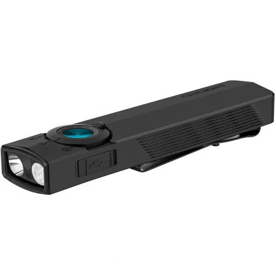 ArkPro torch offers a concentrated beam of 1500 lumens to illuminate a large area; a purely diffused 800 lumens beam for wide illumination, with a range of up to 205 m, strong UV light and green beam. The green beam can be controlled independently and can be freely combined with the three light sources, allowing seven lighting configurations The EDC flashlight adopts a flat design that can be easily slipped into a pocket and is almost imperceptible. The two-way clip allows it to be securely attached to a shirt, trousers or cap, freeing your hands and giving you great flexibility of movement. The design of the ArkPro aims to let you go light and on the move The torch has a striking middle edge, and the textures on the sides ensure a secure grip. The concave button, designed according to ergonomics, is easy to handle. A built-in magnetic base makes it easy to attach to metal surfaces, improving its adaptability in various scenarios ArkPro supports USB-C and MCC magnetic charging modes. Compared to the Arkfeld, its battery capacity has been increased by 33%, providing continuous use for up to 14 days. Thanks to the intuitive circular wheel and dedicated green button, you can easily switch between the three lighting modes for maximum flexibility The ArkPro flashlight is equipped with a two-tone indicator light to differentiate states. White represents the brightness level and green represents the battery status. The ArkPro also has a lock indication function, which clearly indicates whether the locked mode is activated, allowing you to know the torch status at any time