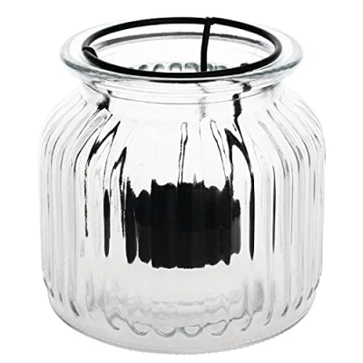 Ribbed glass design, Easy to clean 105(H) x 115(Ø)mm Removable metal holder Metal holder for tea light Suits gastro pubs and restaurants