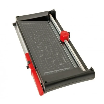 Cutting arm: 5 sheets at a time High safety: finger cutting protection thanks to covered blade, rubber feet for safe use, integrated cutting ruler, extendable handle with safety lock Practical design: transparent contact rail for optimal fixing and straight cut, surface of the paper pad at 320 x 170 mm (DIN A4), lever and roller cutter