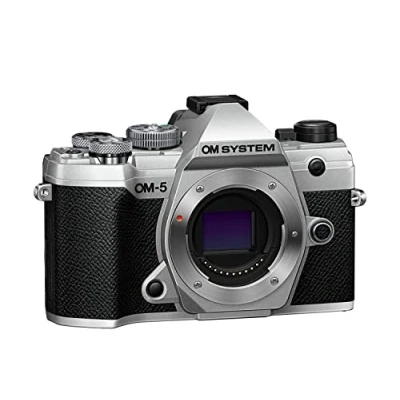 OM System 5 Micro Four Thirds Camera, 20 MP Live MOS Sensor, Improved Axis Image Stabilisation, IP53, Handheld High Res Shot, Silver