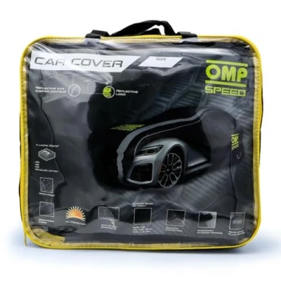 They are waterproof, so those who leave their car on the street can buy it so that your vehicle won't get wet in the rain, and protect it from scratches in hail; in bad weather, good car cover They protect your vehicle from salt peter on the coasts, limescale etc. You will keep your car in perfect condition and you won't have to wash it frequently They come with an anti-theft system, so you won't be afraid to think that when you come back, your car cover is no longer On the other hand, this cover has reflective lines so that your car can be seen from a distance, which will reduce the chances of other vehicles colliding with it Brand: OMP Speed; Size L: 433 x 185 x 145 cm; Available sizes: M-L-XL; Colour: black and grey with yellow logo; Material: 4 layers 110 g/m² PP + PE + PP + Spunlace cotton