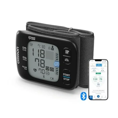 OMRON RS7 Wrist Blood Pressure Monitor for Home Use or on The Go Clinically Validated BP Including Obese People, Machine with Free Smartphone App and Positioning Sensor