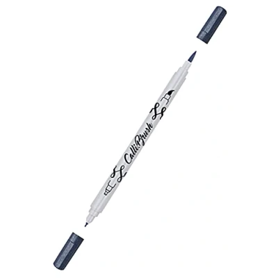 ONLINE Calli.Brush Pen with Double Tip, Brush and Calligraphy Hand Lettering Pens in Various Colours, Colourful Bullet Journal Pens, Colour: Metallic Blue