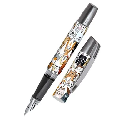 Online Ergonomic fountain pen for school/college Campus Fluffy Cats solid medium nib, soft grip part, standard ink cartridges, refillable, ideal beginners/pupils/students