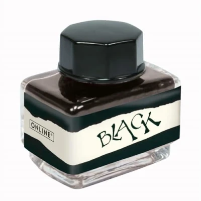 ONLINE Ink Black, Glass 15 ml, Colourful Fountain Pen for Calligraphy, Hand Lettering, Writing Ink, Bottle Converter, Refill on Water Based