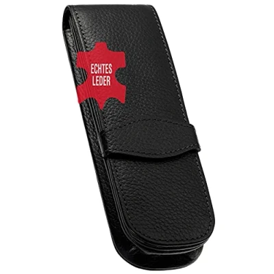 ONLINE Leather pen case, made of genuine leather, black, for three pens, an elegant accessory him and her