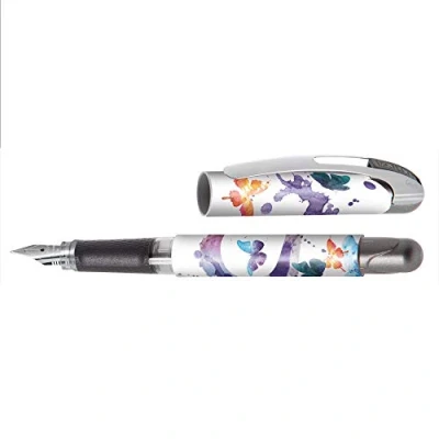 Design: original, colourful watercolour design with magical butterflies flutters into every girl's heart Nib – on the high-quality iridium nib in the thickness M – made in Germany – provides online 5 year warranty Clip – equipped with high-quality chrome-plated metal clip always with you on the go, whether at school, university or leisure Ink – easy to refill with the unique online combination cartridge, standard ink cartridges or can also be used with an ink converter Soft touch – ergonomically shaped grip for long-lasting writing without fatigue, ideal for both right-handed and left-handed users Material: girls' fountain pen made of robust plastic, ideal for everyday school life Includes 1 combination cartridge in blue ink