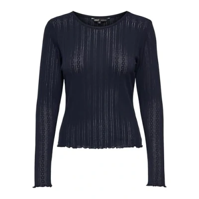 ONLY ONLCARLOTTA Women's Plain Long Sleeve Shirt Basic Crew Neck Rolled Edge Top Top, Blue 2, XS