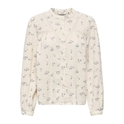 ONLY Onllari Flower Buttondown blouse, Women's, Size: Small, Cloud dancer aop:emb