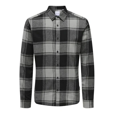 Only & Sons Checkered Lumberjack Shirt Essential Long Sleeve Plaid Flannel Top Leisure Slim Blouse Cotton ONSGUDMUND, Colours:Black dark Grey, Size:M, Black M