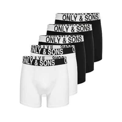 Only & Sons Men's Boxer Shorts, Black/Detail: 3 Black 2 White, S