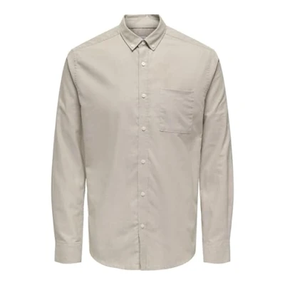 Only & Sons Men's Onsalvaro Slim Ls Oxford Shirt Long Sleeve, Beige, L