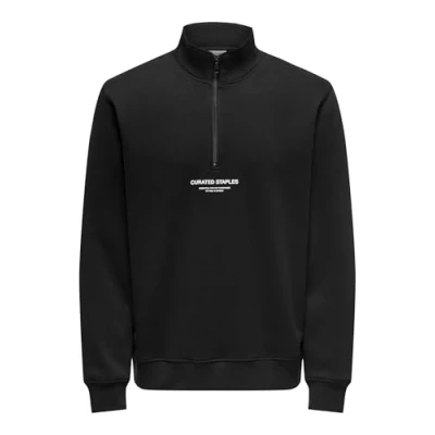 Only & Sons Men's Onscurated Reg Half Zip Sweat Sweatshirt, Black, XL
