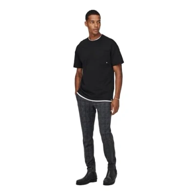 ONLY & SONS Men's Onsmark Check Pants Hy Gw 9887 Noos Trouser, Black, 30 W/32 L, 30W / 32L