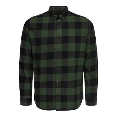 Only & Sons Onsgudmund Checked Shirt Shirt, Men's, Size: Medium, Forest night