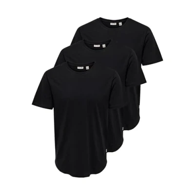 Only & Sons Onsmatt Longy TEE 3 PACK Basic Tshirt, Men's, Size: Medium, Black