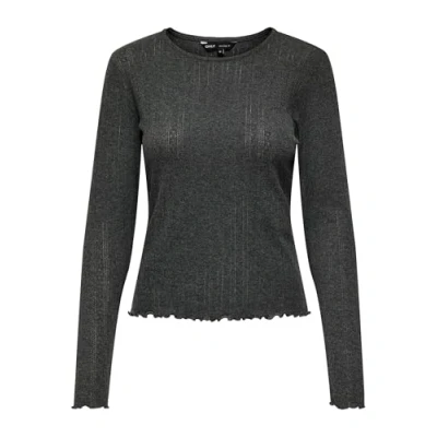 ONLY Women's Solid Color Long Sleeve Shirt Basic Round Neck Rolled Edge Top ONLCARLOTTA, Dark Grey, L