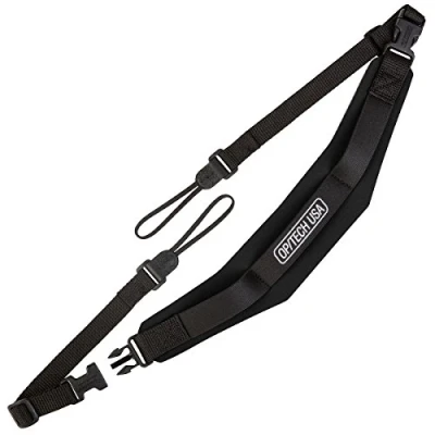 Fits most cameras, great for professional cameras, digital SLR Cameras and large binoculars Easy to attach, fully adjustable with nonslip grip Lightweight 2.5-inch wide neoprene pad has slight curve to rest lower on the neck Quick disconnects, connection system capabilities; 40 to 46 inches in length Great for around the neck and/or over the shoulder use