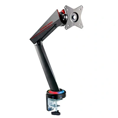 Articulated arm for PC and TV screens up to 35 inches - The OPLITE monitor support is equipped with a powerful gas spring, whose pressure is adjustable and which thanks to the VESA mounting centres (75 x 75 mm, 100 x 100 mm, 100 x 200 mm and 200 x 200 mm) can be used on all screen types from 17 to 35 mm. . With a load capacity of 9 kg, it is your best ally for a long-term investment. ✅【Stepless adjustment for an unmatched ergonomic position】 - 360° rotation, 180° swivel, +/-40° tilt angle. With the OPLITE arm, you can easily raise your monitors to a height of +45 cm (centre of the screen) with one hand, effectively reducing the pressure naturally exerted on your neck and back. In combination with the OPLITE Supreme Desktop, you can even use it while standing. Connection technology, RGB LEDs and mounting options: OPLITE brackets have style! Equipped with full-speed USB 3.0 ports and a 3.5 in/out jack, they allow you to connect all your peripherals with a perfect management cable. The desk space is intact. The OPLITE arm comes with a powerful C-clamp and a mounting kit for your desk eyelet. High quality, ergonomics and durability: The Oplite Supreme Arm is undoubtedly the most complete arm on the market. The Oplite Supreme Arm is suitable for office automation, development and video game competitions (esport). The technology used for our lifters minimises vibration and noise to perfectly meet the needs of the most demanding professional users. Fluid design and easy installation: The Oplite arm has a determined gaming design, with its protruding line and RGB LEDs, it will delight gamers. The box contains all the necessary accessories and an instruction manual in English.