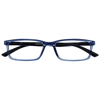 Advantages of reading glasses blue light filters - Do you spend a lot of time in front of your computer? Improve memory function, reduce eye strain, reduce migraine by reducing exposure to blue light, HEV UV400 rays. Quality and style: the Opulize reading glasses with blue light filter offer incredible value for money and at the same time rely on modern design. A lightweight, narrow frame in 7 vibrant colours. For men and women of all ages. Comfortable fit – Our stylish Opulize See blue light reading glasses with scratch-resistant lenses look good on almost any face shape. A lightweight, narrow frame with spring hinges provides a comfortable fit for all day wear. Colours: transparent blue with solid black temples. Strengths: +2.50