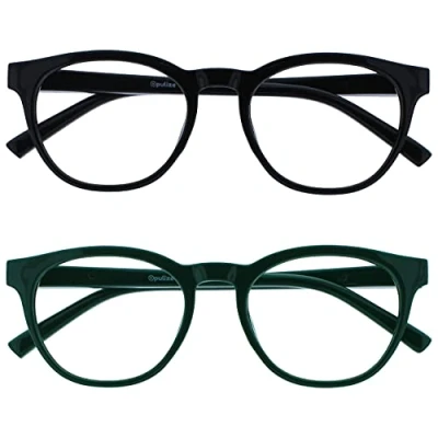 OPULIZE Blu BB5 13 Reading Glasses Blue Light Filter Pack of 2 Cool Round Frame Spring Hinges Improve Sleep Computer Gaming Anti Glare Men Women, black/green, +1,00 Dioptrien