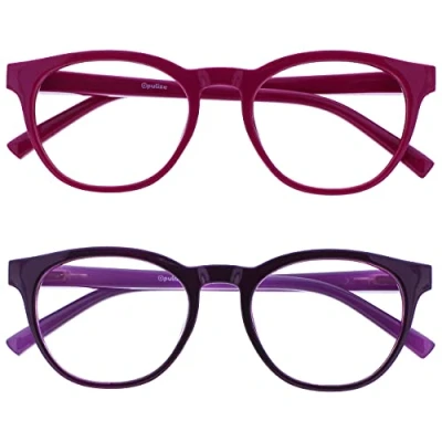 OPULIZE Blu BB5 13 Reading Glasses Blue Light Filter Pack of 2 Cool Round Frame Spring Hinges Improve Sleep Computer Gaming Anti Glare Men Women, Pink/Purple, +3,50 Dioptrien