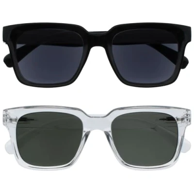 OPULIZE ERA Sunglasses Black/Green Lens 2 Pack Anti reflective Glare Polarised Lenses With UV400 Protection Oversized Rectangular Frame Spring Hinges Black/Clear Mens Womens