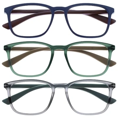 OPULIZE Max Reading Glasses Classic Large Rectangular Frame Men's Women's Unisex Spring Hinges R78, Blue/Green/Grey, +2.50 Magnification