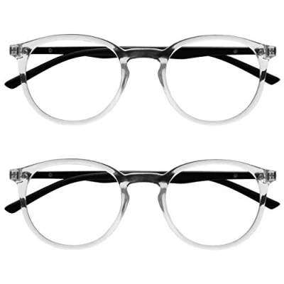 OPULIZE Met BB60 C +2.50 Reading Glasses Blue Light Filter Pack of 2 Slim Round Frame Spring Hinges Improved Sleep Computer Gaming Transparent Black Temples Men Women