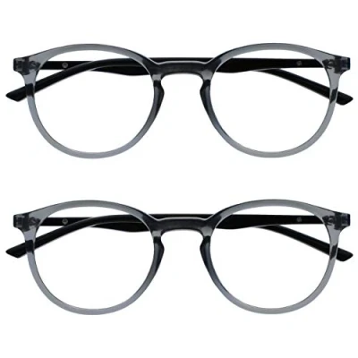 OPULIZE Met Reading Glasses Blue Light Filter Pack of 2 Slim Round Frame Spring Hinges Improved Sleep Computer Gaming Anti Glare Transparent Grey Men Women BB60 7 +3.50
