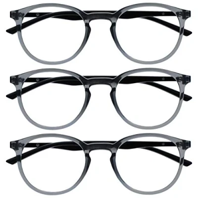 OPULIZE Met Reading Glasses Blue Light Filter Pack of 3 Slim Round Frame Spring Hinges Improved Sleep Computer Gaming Anti Glare Transparent Grey Men Women BBB60 7 +2.50