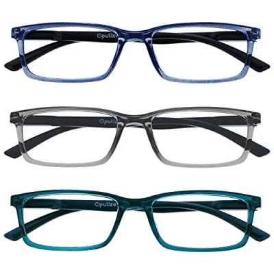 Advantages of reading glasses blue light filters - Do you spend a lot of time in front of your computer? Improve memory function, reduce eye strain, reduce migraine by reducing exposure to blue light, HEV UV400 rays. Quality and style: the Opulize reading glasses with blue light filter offer incredible value for money and at the same time rely on modern design. A lightweight, narrow frame in 7 vibrant colours. For men and women of all ages. Comfortable fit – Our stylish Opulize See blue light reading glasses with scratch-resistant lenses look good on almost any face shape. A lightweight, narrow frame with spring hinges provides a comfortable fit for all day wear. Colours: transparent blue with solid black temples, transparent grey with solid grey temples, transparent turquoise with solid turquoise ironing Strengths: +1.50