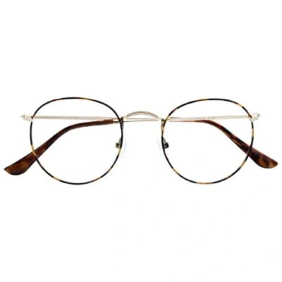 OPULIZE Sol Reading Glasses with Blue Light Blocking Round Metal Retro Frame Spring Hinges Improve Sleep Reduce Headache Computer Gaming Anti Reflective Men Women B94, Brown Tortoiseshelll,