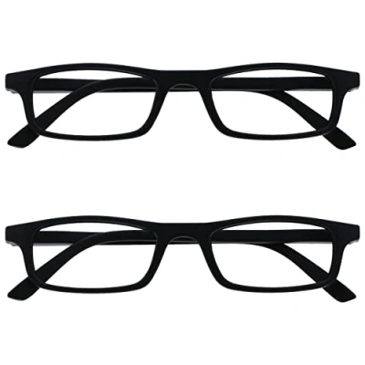 OPULIZE Ted Reading Glasses Pack Narrow Matt Lightweight Frame Spring Hinges Scratch Resistant Mens Womens R17, Black, +2.00 Magnification