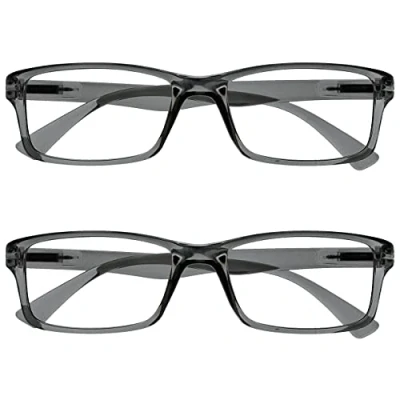 Two pairs of stylish mens/womens/unisex 'Designer' style reading glasses. For indoors/normal reading conditions. Sturdy frame design with quality hinges. Grey finish. Strength +2.00.